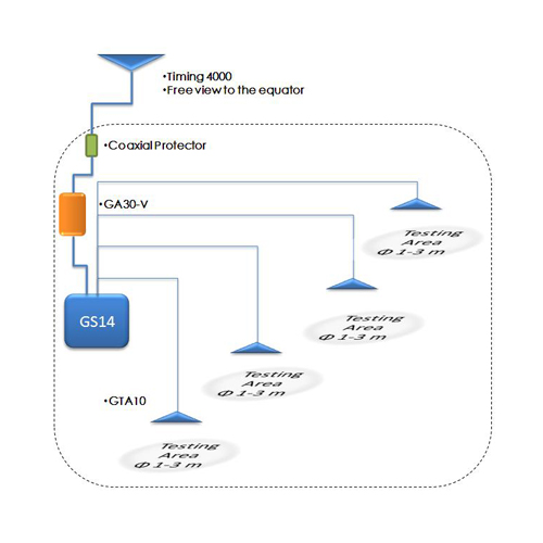 Testing Solution of GPS-based Repeater : a single point of small-scale test signal coverage; Coverage Distance: 10M (radius); Test Area of Signal uniform : the radius of 3 ~ 5M; Frequency Range: GPS L1 (Choosing other GPS antenna, to get more band signal repeater); Power: 220V AC / 9V DC; System Configuration Amplifier Gain of Repeater : adjustable range: 0dB ~ 30dB.