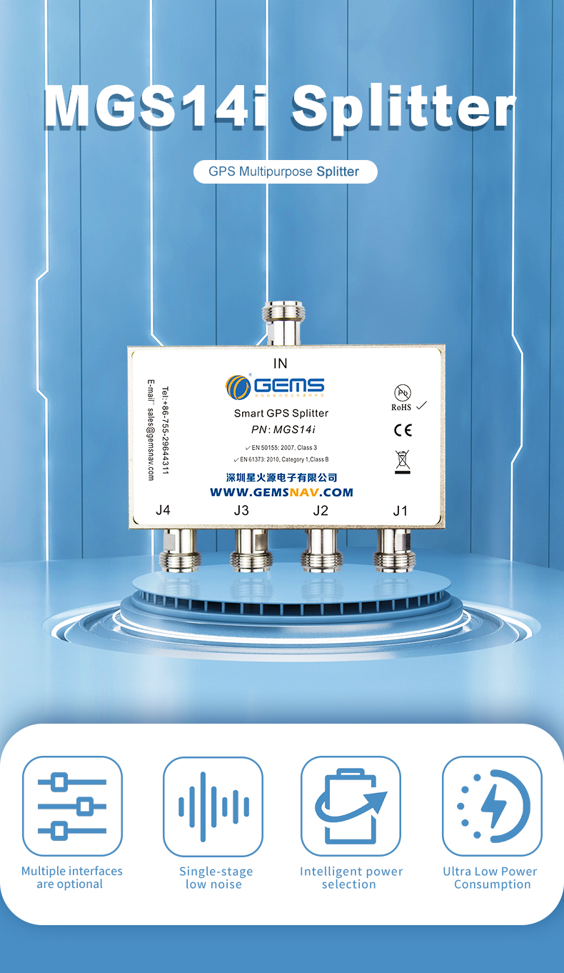 The MGS14i IS a high performance GPS signal splitter that can be configured to monitor the GPS antenna current , providing and alarm indication if the antenna is not operating to spec. The MGS14i also features an optional antenna DC bias “Pick‐&Choose” circuit which allows for active antenna DC input to be applied to any or all of the RF outputs, With this option ,one DC voltage will be chosen to power the antenna while the other input will be switched to DC loads, if the selected DC bias input should fail, the DC bias will be automatically switched to another DC input so as to ensure an uninterrupted supply to the active antenna. The MGS14i man be configured as a passive or an active device, giving the network engineer the flexibility to specify the device gain and port‐to‐port isolation, The MGS14i may also be ordered with surge protection on all five ports and in a sealed housing sufficient for many years of Operation in external environments.