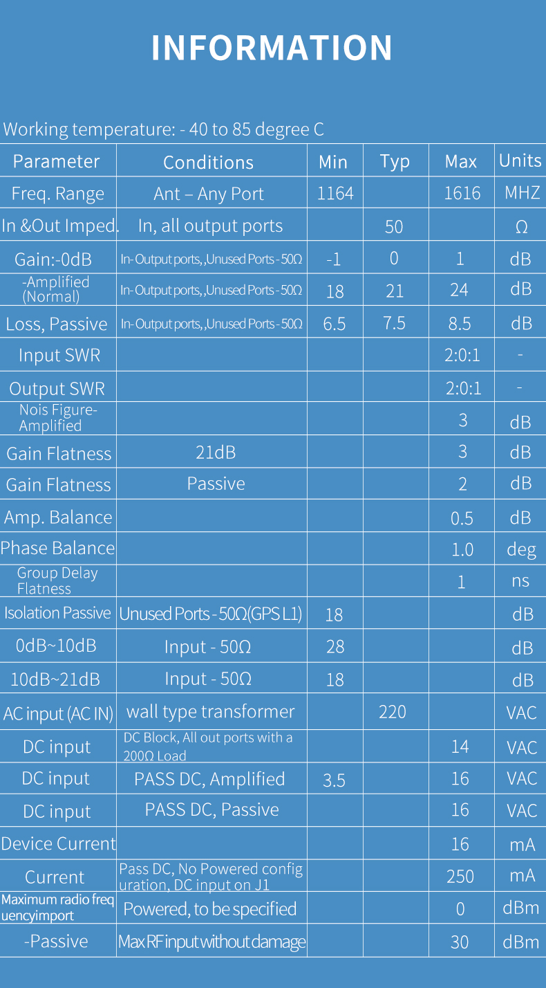 The MGS14i has the option as either a passive devide, of to be ordered with amplification. If the amplified option is chosen, additional options are available for specifying the amplifier gain and the poer-to-port is isolatin . Amplified versiona of the MGS14i that also include the high Isolation option do not require 50 ohm termination on unuesd ports in order for the splitter to peratte properly. Passive versions or amplified versions without the high solation option always require 50 ohm terminations on unused ports for proper operation.