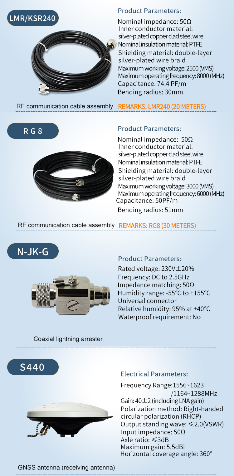 2. Cable assembly RG8 fixed along the out wall, one terminator connects S440, the another to protector at the appropriate place. In some special environment, select PE or PVC material plastic pipe to protect the cable assembly is quite sensible;