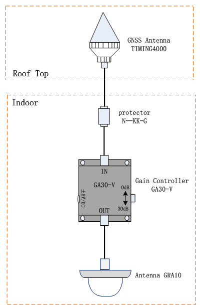 1. GPS Antenna(TIMING 4000) be installed on roof of the building;