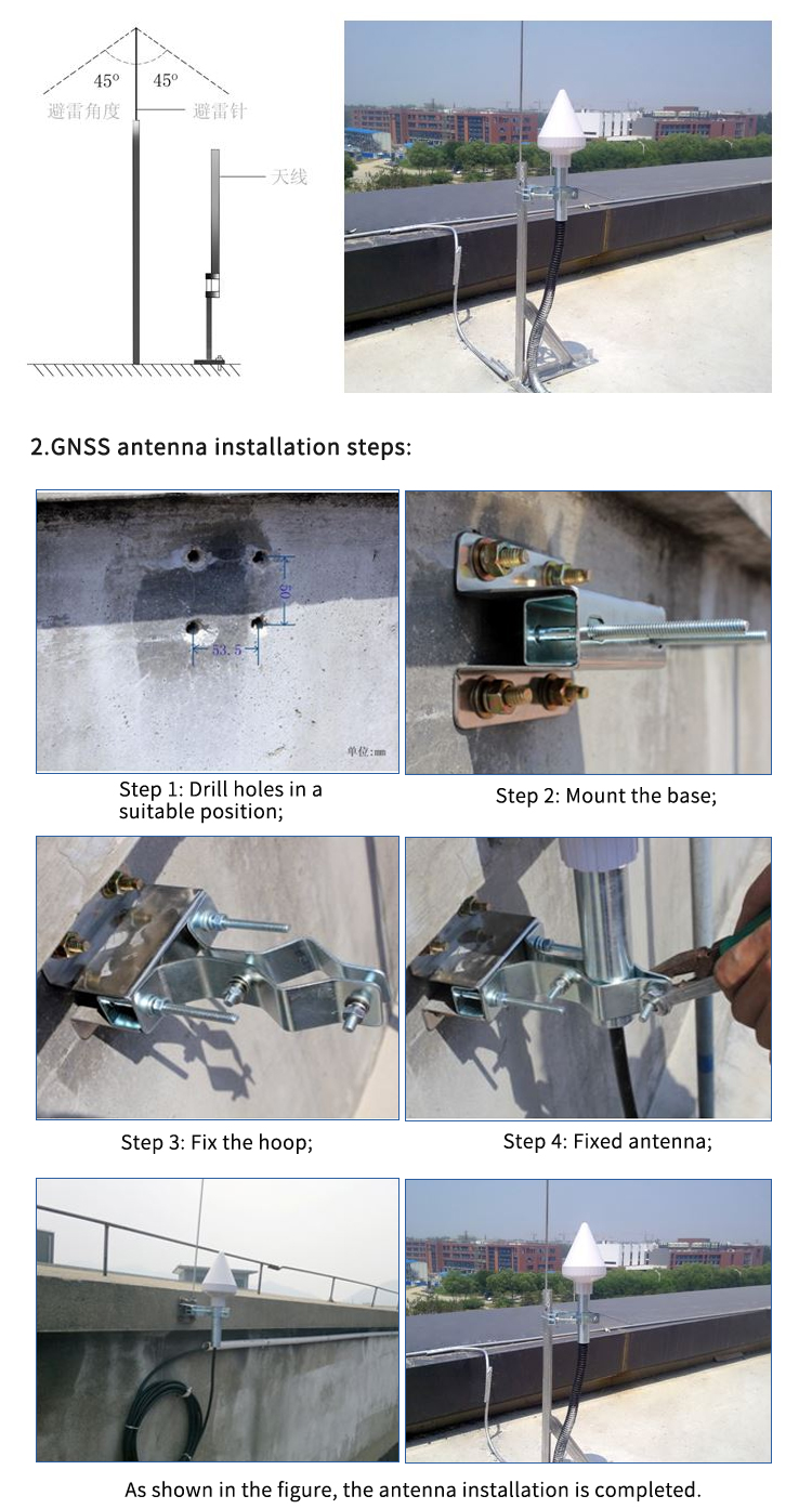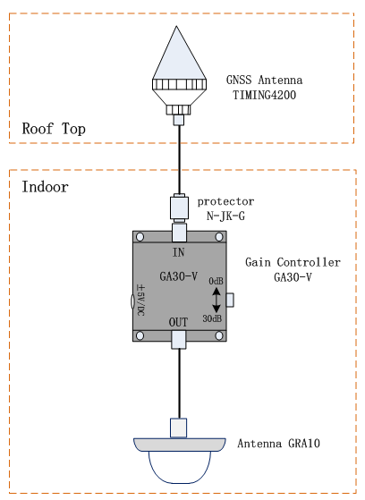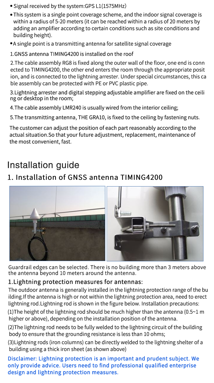 1. GPS Antenna(TIMING 4200) be installed on roof of the building;