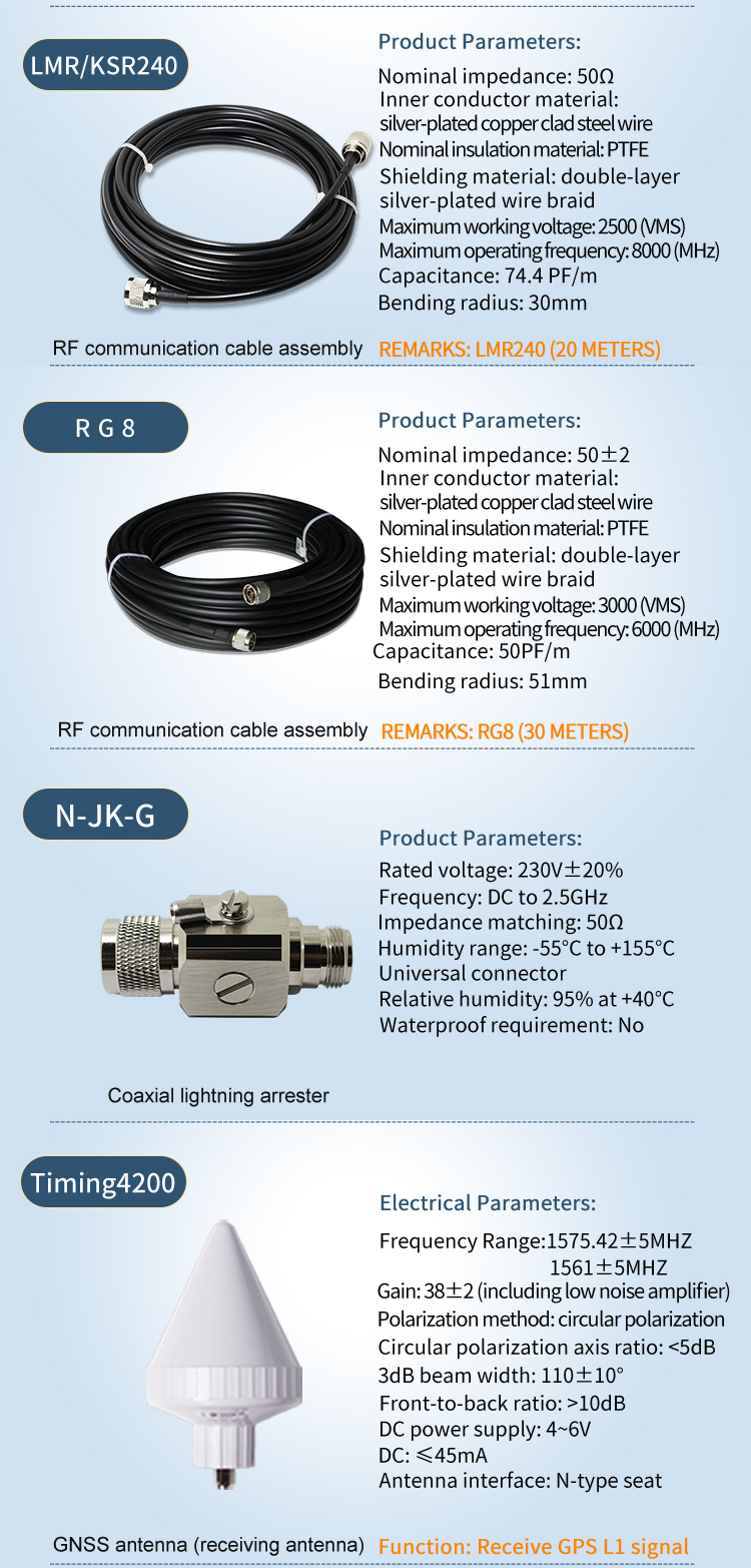 2. Cable assembly RG8 fixed along the out wall, one terminator connects TIMING 4200,the another to protector at the     appropriate place. In some special environment, select PE or PVC material plastic pipe to protect the cable assembly is quite sensible;
