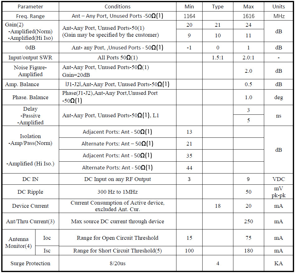 The GS14i IS a high performance GPS signal splitter that can be configured to monitor the GPS antenna current , providing and alarm indication if the antenna is not operating to spec. The GS14i also features an optional antenna DC bias “Pick‐&Choose” circuit which allows for active antenna DC input to be applied to any or all of the RF outputs, With this option ,one DC voltage will be chosen to power the antenna while the other input will be switched to DC loads, if the selected DC bias input should fail, the DC bias will be automatically switched to another DC input so as to ensure an uninterrupted supply to the active antenna. The GS14i man be configured as a passive or an active device, giving the network engineer the flexibility to specify the device gain and port‐to‐port isolation, The GS14i may also be ordered with surge protection on all five ports and in a sealed housing sufficient for many years of Operation in external environments.