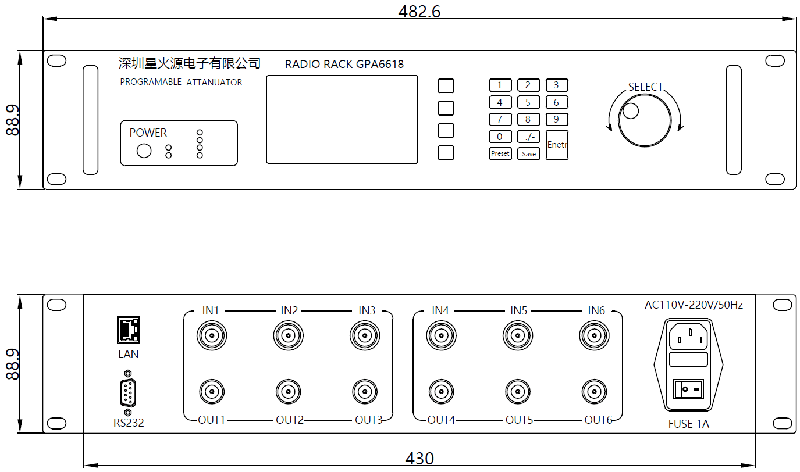 Input/Output 6 into out of 18 independent attenuation control NF